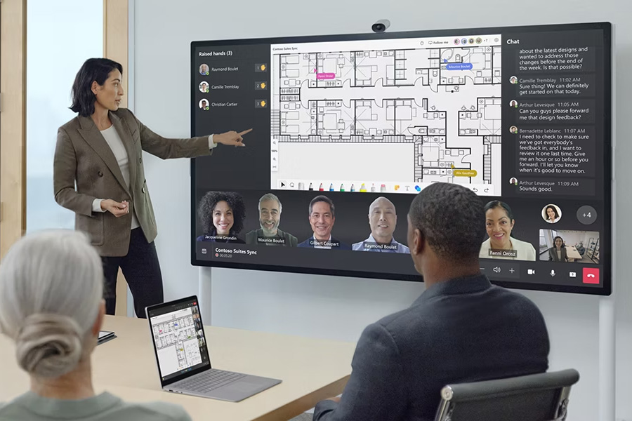 Nowoczesne ekrany interaktywne mogą współpracować z platformami takimi jak Microsoft Teams, Zoom czy Webex, umożliwiając współpracę zespołów pracujących zdalnie i stacjonarnie.